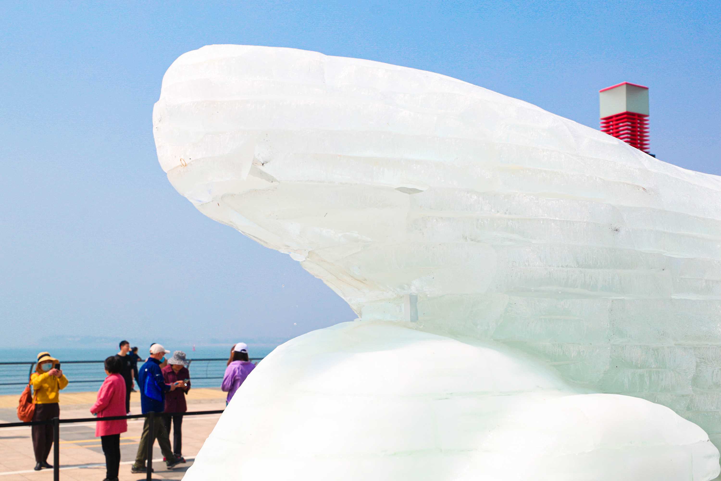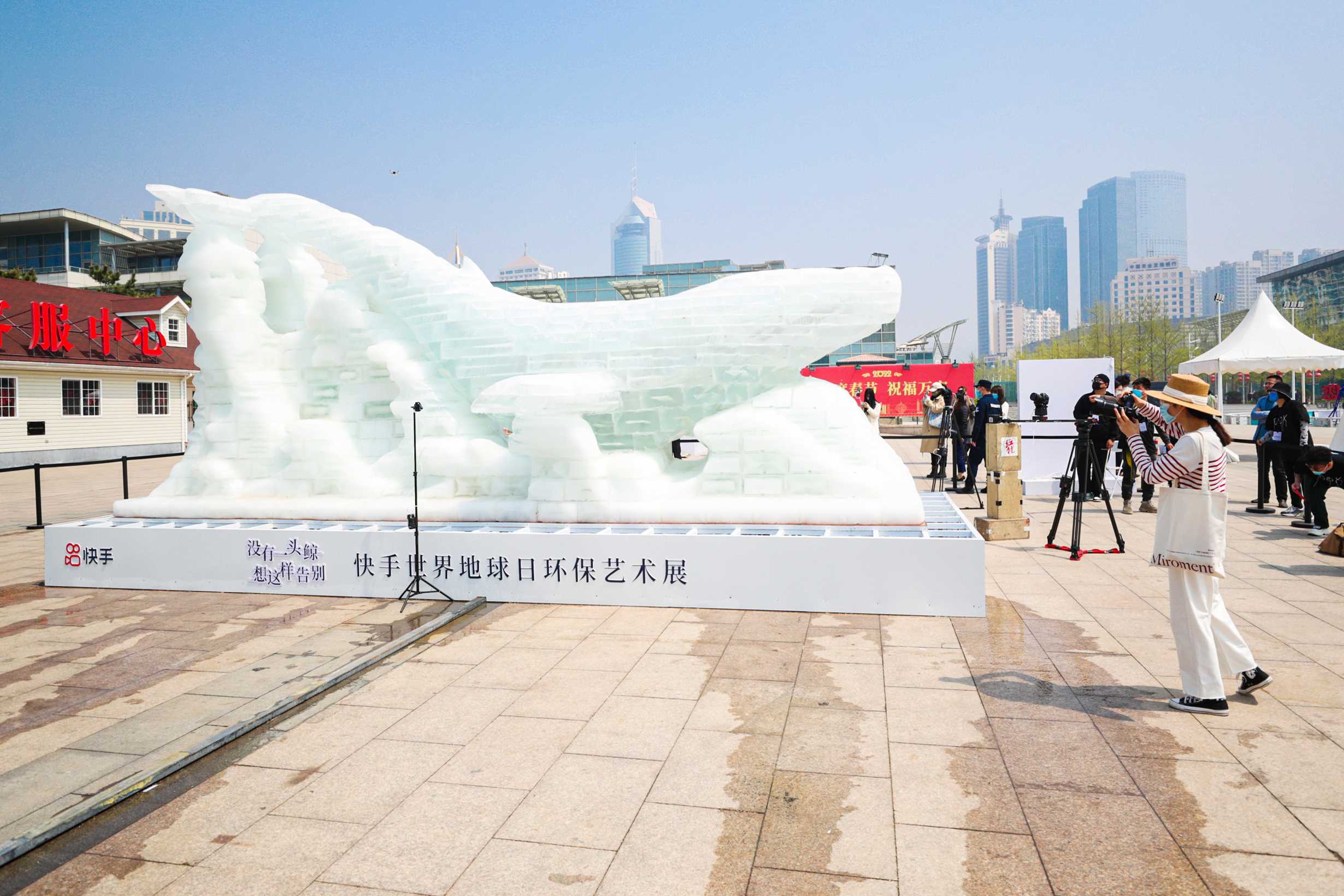 4月20日-21日,由快手发起、蓝丝带海洋卫士团队作为独家公益支持单位联合参与的“世界地球日”环保艺术展——《没有一头鲸想这样告别》,在青岛奥林匹克帆船中心正式开展。一座长达7.4米,约一层楼高的巨型鲸鱼冰雕,在黄海岸边静静伫立了2天。