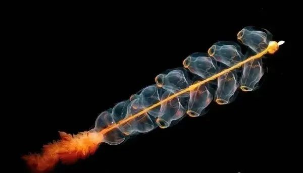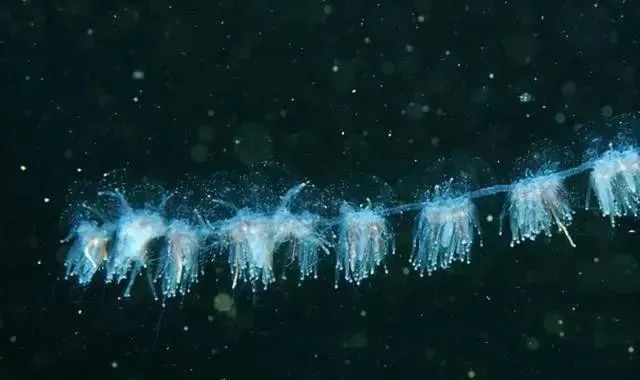 管水母并非单一的个体生物,而是由无数微小的生物个体组成的庞大群体。这些个体被称为 “zooids”,它们各司其职,有的负责游动,有的专注于捕食,有的则承担繁殖任务。整个管水母就像一个高度协作的社会,每个成员紧密相连,形成了一个独特而复杂的整体结构,这一结构也是它们能够在海洋中生存并展现惊人特性的基础。