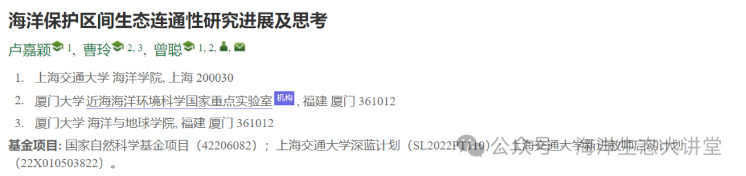 海洋卫士专家曾聪| 海洋保护区间生态连通性研究进展及思考