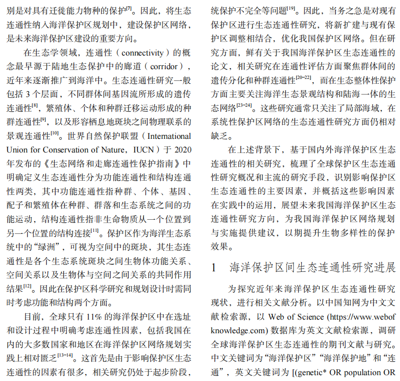 引用本文:卢嘉颖, 曹玲, 曾聪. 海洋保护区间生态连通性研究进展及思考[J]. 自然保护地,2024,4(4):107−121. DOI: 10.12335/2096-8981.2023121101