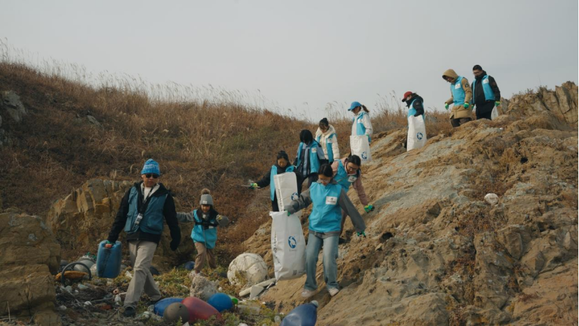 经过简单的分组和区域划分,志愿者们戴上防护手套,分散到各个区域展开作业。大家弯腰捡拾、仔细甄别,将符合要求的塑料垃圾小心翼翼地装入标注有小组编号的收集袋中。礁石缝隙里的小瓶罐、海滩上被冲上岸的包装壳,都被志愿者们一一找出。