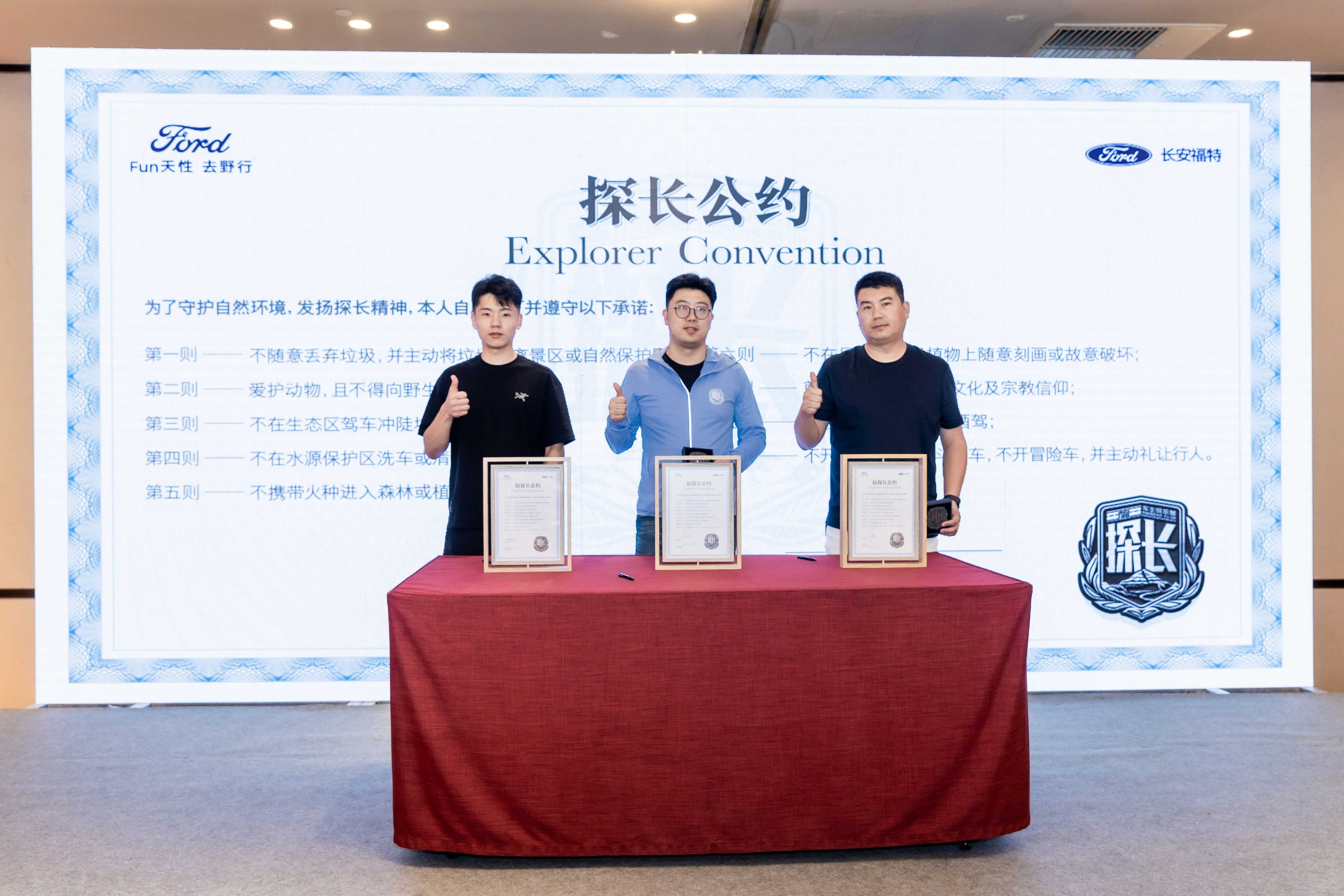 课程结束后,在专家的带领下,全体成员共同签署《环保倡议书》,以实际行动响应可持续出行与生态守护的双重承诺。仪式之后,长安福特携手海洋卫士生态研究中心为福特探险者新车主颁发了专属“福探长”徽章,这不仅是一份荣誉,更象征着勇于探索、敢于担当的精神认同。